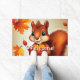 A cute fall inspired door mat featuring the friendly Mr. Squirrel! This is an AI image and character generated by me.