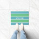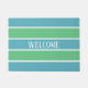 Un motif de grandes rayures bleues et vertes aux visiteurs.