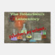 Un laboratoire déplaisant, la maison du scientifique fou. Cette natte unique peut être personnalisée pour n'importe qui qui aime décorer pour Halloween. Art original de vecteur par la ménagerie du couche-tard, c.2015.