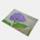 Ce tapis de porte comporte une fleur d'hortensia de lavande avec l'accueil de mot. Copyright : Marjorie Tietjen