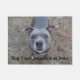 Le message sur cette natte indique, "festin de chien exigé à la porte." Une image merveilleuse d'un nez bleu beau Pitbull appelé Sarge est également montrée sur cette natte. Sarge regarde vous avec de grands yeux larges, oreilles s'effondant au-dessus de sa tête et une expression comique sur son visage pendant qu'il attend ardemment quelqu'un pour lui donner un festin de chien.