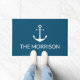 Nautical Custom Boat Name ancrage blanc turquoise bleu mat de porte. Personnaliser texte voile nautique texte, nom du capitaine. Nom du bateau, magasin, nom commercial. Design minimaliste, simple et élégant. idéal pour les navigateurs, les plaisanciers, la voile et la navigation de plaisance. Bonne navigation !