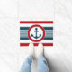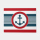 Design nautique avec décoration d'ancre en forme ronde sur bleu, rouge et blanc rayé arrière - plan