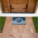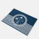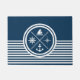 Design à thème nautique avec symboles nautiques (ancre, voilier, voilier, boussole) décoration sur arrière - plan rayé blanc et bleu marine.