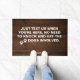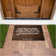 Tout le monde avec des chiens sait quand la sonnette de porte sonne qu'ils deviennent fous. Ce tapis dit : "Envoyez-nous un texto quand vous êtes ici. Pas besoin de frapper et de faire participer les chiens." Ce tapis a un arrière - plan rustique en bois.