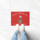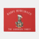 Paillasson de Noël adorable avec un DobermanDog portant un chapeau santa sur un arrière - plan rouge festif.