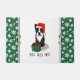 Joyeux Noël Père Noël Boston Terrier - Drôle chien souriant avec un chapeau de Père Noël et un cadeau de Noël. HO, oh ! Copyright © Angi Laframboise. Les mignons chiens de vacances produisent des cadeaux de Noël de dessin animé pour la maison.