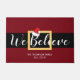 Décorez pour les prochaines vacances avec ce tapis de portes moderne et festif. Il présente un design de ceinture père Noël avec un script blanc disant "We Believe" avec un design de chapeau de Père Noël accusant. Le nom de votre famille et la date établie sont en blanc. Dites à tout le monde que vous croyez à l'esprit de Noël avec ce joyeux et fantaisiste tapis de Noël !