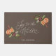 Tapis à thème de Noël rustique avec aquarelle illustration de la verdure d'hiver avec orange et épices. Le texte dit "joie pour le monde" en caractères de script.