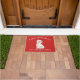 Porte de Noël adorable avec un chien Westie portant un chapeau santa sur un arrière - plan rouge festif.