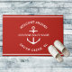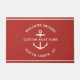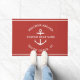 Porte nautique en rouge lisant "bienvenue à bord" ainsi que votre nom et votre emplacement de bateau sur mesure.