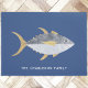 Amusant thon avec un sourire gais, sur un arrière - plan bleu marine. Art original de Nic Squirrell. Modifiez le nom de famille ou le texte à personnaliser.