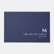 Le mat moderne présente un design simple dans une palette de couleurs bleu et blanc avec médaillon monogramme stylisé en blanc avec typographie moderne. Personnalisez avec une initiale monogrammée personnalisée, le nom de famille et la date d'établissement, ou utilisez le bouton "Contactez ce concepteur" pour obtenir de l'aide. Un mariage parfait ou un cadeau de ménage pour le couple élégant ou un cadeau de maison moderne pour toute occasion.