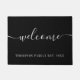 Élégant porte de nom de famille personnalisée avec votre nom de famille avec votre date établie en texte blanc classique sur un arrière - plan noir avec le message "bienvenue" qui est défini dans un élégant texte de script blanc. Personnalisez avec vos détails et customisez la couleur à la couleur de votre choix. Conçu par Thisisnotme©