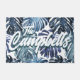Paillasson Nom de famille tropical Blue White Palm Feuilles