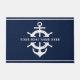 Porte nautique en bleu marine lisant votre nom de bateau personnalisé entouré par le puits et l'ancre d'un navire.