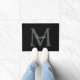Paillasson Nom du script turquoise, Monogramme gris grand sur