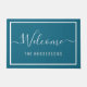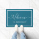 Paillasson Nom personnalisé Elegant Script Welcome Turquoise