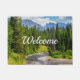 Porte d'accueil personnalisable offrant une vue sur la rivière Shoshone North Fork qui traverse des arbres à feuillage persistant avec des montagnes dans l'arrière - plan de Shoshone National Forest, Wyoming, États-Unis près de l'entrée est du parc national Yellowstone. Vous recherchez plus de produits ? Visitez mon magasin : http://www.zazzle.com/timelessmomentsphtgy L'art a été pris par Jennifer White avec Timeless Moments Photography. Toutes les images sont protégées par des droits d'auteur.