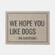 Cette drôle de conception de tapis de portes comporte les mots "We Hope You Like Dogs" (Nous espérons que vous aimez les chiens). Personnalisez ce mignon tapis de porte rustique faux burlap avec votre nom de famille et votre salutation personnalisée. Le cadeau unique moderne de chauffage ou de nouveau propriétaire.