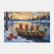 Bring energetic, fox-like charm to your holiday season with this beautiful Nova Scotia Duck Tolling Retriever Christmas design! This magical scene features three alert, medium-sized Nova Scotia Duck Tolling Retrievers (Tollers) sitting attentively in a cozy wooden boat, gently floating on a serene snowy lake at sunset. The boat is beautifully adorned with glowing Christmas string lights and fragrant pine garlands, while the dogs wear festive scarves. They are surrounded by colorful wrapped presents and cheerful holly branches. Soft snowflakes gently fall, and the shimmering reflection of the lights on the water creates a truly magical winter holiday atmosphere. This design is a perfect Christmas gift for any Toller owner, dog lover, or admirer of festive and unique sporting dog art, capturing the serene joy of the season.
