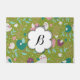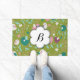 Joli, coloré, mignon, lunatique décrit notre tapis de porte design Whimsy Tweety Birds on Vines. On y trouve de petits oiseaux turquoises, viticoles, blancs et roses sur des vignes d'aqua avec des petites fleurs blanches, des tourbillons roses, le tout sur un arrière - plan vert. Ce tapis de porte ludique, coloré et fantaisiste comporte une bannière en forme de fleur blanche que vous pouvez facilement personnaliser avec votre monogramme initial!