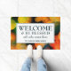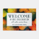 Élégant mat DE BIENVENUE avec le libellé BIENVENUE & ÊTRE BÉNÉFICIÉ DE TOUS CEUX QUI ENTRENT ICI (SAUF LES PASSEURS DE TRESPASSE). L'arrière - plan est un motif de bokeh orange. Tout le texte est PERSONNALISABLE afin que vous puissiez modifier le libellé en fonction de vos besoins.