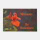 Belle porte d'accueil orangée et verte avec Nasturtiums orange vif contre un doux arrière - plan terreux muet. Tout le texte est personnalisable pour votre propre salutation et Nom de famille.