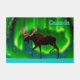 Une image toujours si légèrement stylisée d'une silhouette d'orignal contre les aurores boréales. Le texte "Canada" apparaît en bleu brillant.