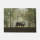 Une illustration d'une silhouette d'orignaux/élans avec des andouillers dans le graphique de vecteur de forêt. En verts et bruns de grunge. Chasse et conception d'image de chasseurs. Paysage sauvage de la vie.