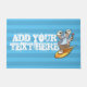 Un grand tapis porte avec un ours polaire cool de glace en lunettes de soleil et chemise hawaïenne, qui se refroidit sur une planche de surf avec ventilateur tenu à la main et boisson froide. Un dessin animé amusant pour les surfeurs et les amateurs de surf, les amateurs de sports nautiques et les amis qui aiment les vacances sur la plage au soleil. Dessin inspiré par la mini vague de chaleur que nous avions au Royaume-Uni cette semaine-là. Modifiez le texte par défaut pour accueillir vos visiteurs avec un message personnel ou une légende.