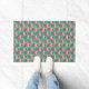 Ce tapis porte un design moderne du milieu du siècle des ovales avec des demi-cercles à l'intérieur dans les couleurs de Noël rétro.