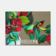 Tapis de bienvenue floral arty orné de fleurs de Camellia aquarelle originale de l'artiste Sacha Grossel contre un arrière - plan terreux et personnalisable, avec signe de bienvenue. Un tapis de porte de bienvenue doux et accueillant, parfait pour votre maison.