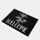 Un paillasson en bambou gris de thème de style de zen comportant l'illustration en bambou de plante sur un fond coloré personnalisable noir avec le signe bienvenu. Un bon tapis de porte d'accueil de chi d'art simple et asiatique parfait pour votre maison.