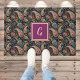 Ce mat de porte vintage personnalisé présente de jolies couleurs de noir, violet, et turquoise — semblable au turquoise profond, ainsi qu'un monogramme initial en écriture or sur violet, bordé d'or. Ce tapis de porte vous offrira un accueil personnalisé et magnifique. Assurez-vous de taper votre initiale dans la zone Personnaliser.