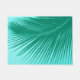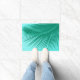 Silhouette en feuille de palmier de turquoise/paon contre un tapis de porte bleu vert léger d'arrière - plan