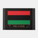 Tapis : Drapeau panafricain et tapis "Bienvenue" de l'UNIA - Symbole panafricain du drapeau - UNIA / Tribande horizontale de rouge, noir et vert. Le drapeau panafricain—aussi connu sous le nom de drapeau afro-américain, drapeau de libération noire, drapeau de l'UNIA. Souvent utilisé avec le mouvement Black Lives Matter.