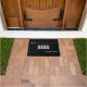 De grands numéros de maison blanche peuvent être personnalisés pour faire un cadeau de ménage unique. Les numéros de maison sont au centre d'une porte noire. Au-dessus des chiffres, vous pouvez écrire votre message personnalisé (indiqué : Bienvenue). Faites-en un panneau d'adresse de rue en changeant le texte d'affichage sous le numéro de maison en rue du destinataire. Tout le texte est blanc et peut être modifié ou supprimé.