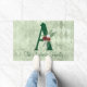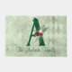 Un design de vacances joli et festif comporte la lettre majuscule A avec un remplissage de scintillement vert et orné d'un bouquet d'aquarelle de fleurs et de feuillage d'hiver sur un fond de motif harlequin vert éteint et en détresse. Personnalisez avec un nom ou un autre message