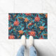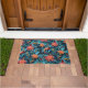 Un beau tapis de porte avec un motif continu de papier floral contre un arrière - plan bleu.