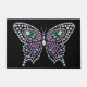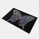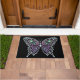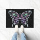 Rug en pierre de rhinocéros à bijoux en diamants en pierre de rhinocéros violet, rose et blanc. Bienvenue papillon mousseux bling Mat Décor maison. Des bijoux multicolores dessinés à la main ornent un papillon en forme d'arrière - plan noir. Porte avant ou arrière ou tapis de cuisine, Customisez votre texte, couleur, style sur votre tapis papillon bijoux pour correspondre à votre goût. Note : les strass ne sont pas réels, c'est dessiné à la main bijoux sur papillons snap.