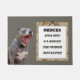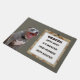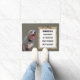 Ce tapis de portes hilarant montre un sergent d'exercice Pitbull qui crie les ordres requis pour entrer dans votre maison. Les commandes telles qu'elles sont imprimées sont : "Bottes essuyées, K-9 inspectées, Traitement produit, Entrée acceptée." Les commandes sont placées sur un panneau accroché au mur sur le thème du Camo du désert.