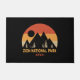 Design rétro du parc national de Zion avec montagnes, arbres, paysage et nature.