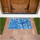 Tapis de portes dans une illustration basée sur le motif "Macaw" de Walter Crane pour les studios William Morris. Un macaw / perroquet sauvage dans un cadre de jungle exotique - numériquement rehaussé et coloré d'indigo bleu et blanc