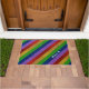 Ajoutez une touche pétillante à votre décor de maison avec ce tapis de porte à rayures à parties scintillant arc-en-ciel brillant et brillant. Le mat alterne les bandes de parties scintillant rouge, jaune, vert, bleu et violet. Ajoutez votre nom de famille et un coeur pour une touche personnelle (ou retirez, selon votre préférence). Ce tapis est parfait pour tout enfant ou adulte qui aime les choses amusantes et colorées! Ce tapis de porte fait un grand ménage personnalisé, anniversaire, Noël ou autre cadeau de vacances!