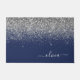 Parties scintillant à étincelles bleu marine et argent Nom du monogramme et mat initial de la maison. Cela rend le cadeau parfait pour 16 ans, mariage, douche nuptiale, anniversaire, baby shower ou bachelorette pour quelqu'un qui aime le luxe glam et les styles chic.