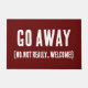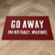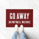 Drôle tapis de bienvenue. Tapis de bienvenue pour la porte d'entrée, dit "Go Away"ajoute aussi "Non, pas vraiment. Bienvenue !".