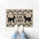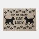 Le dessus et le bas de ce tapis porte CAT LADY PAS SI CRAZY sont accentués avec des pistes de chat. De part et d'autre du libellé, deux chats silhouettes se font face. Changez l'arrière - plan bronzé affiché à n'importe quelle couleur de votre choix. Vous pouvez également modifier le style de police.