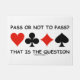 Si vous avez déjà joué au jeu du pont et vous avez réfléchi à passer, vous apprécierez ce porte-humour de pont avec les quatre costumes de carte avec le dicton "Passer ou ne pas passer que c'est la question". Faites une double prise sur ce que vous pensez la prochaine fois que c'est votre tour de soumissionner avec ce tapis de porte! Avec des excuses à William Shakespeare sur ce pont commun dire!