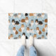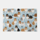 Les chiens mignons de Collie rugueux s'assoient et se tiennent et se retournent avec des manteaux de sable, tricolores, merles et blancs avec des os de chien éparpillés et des motifs de pawprints.